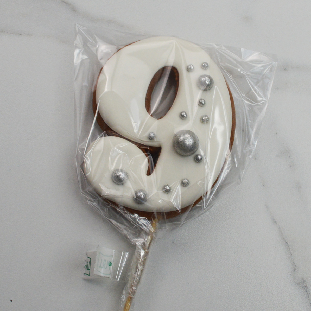 —Пряник ЦИФРА "9" с посыпкой СЕРЕБРО 9см