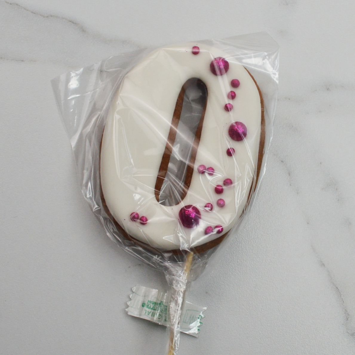 —Пряник ЦИФРА "0" с посыпкой РОЗОВЫЙ блеск 9см