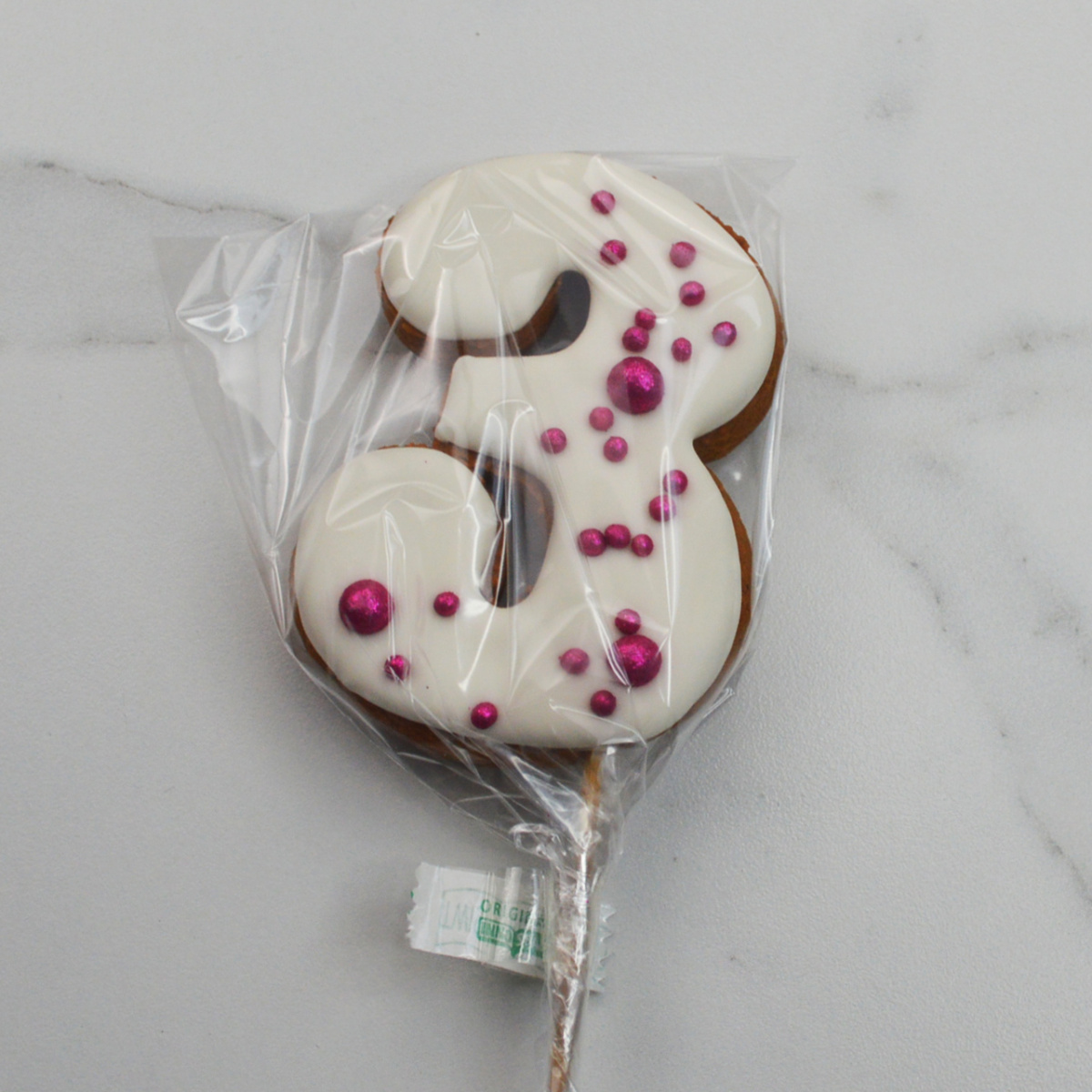 —Пряник ЦИФРА "3" с посыпкой РОЗОВЫЙ блеск 9см
