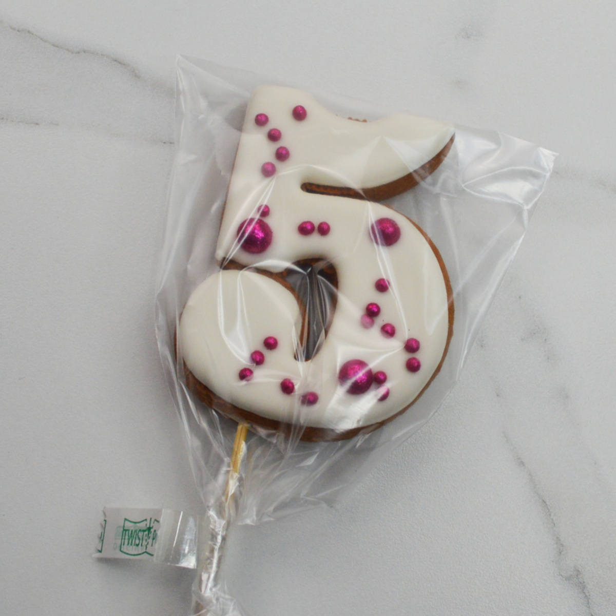 —Пряник ЦИФРА "5" с посыпкой РОЗОВЫЙ блеск 9см