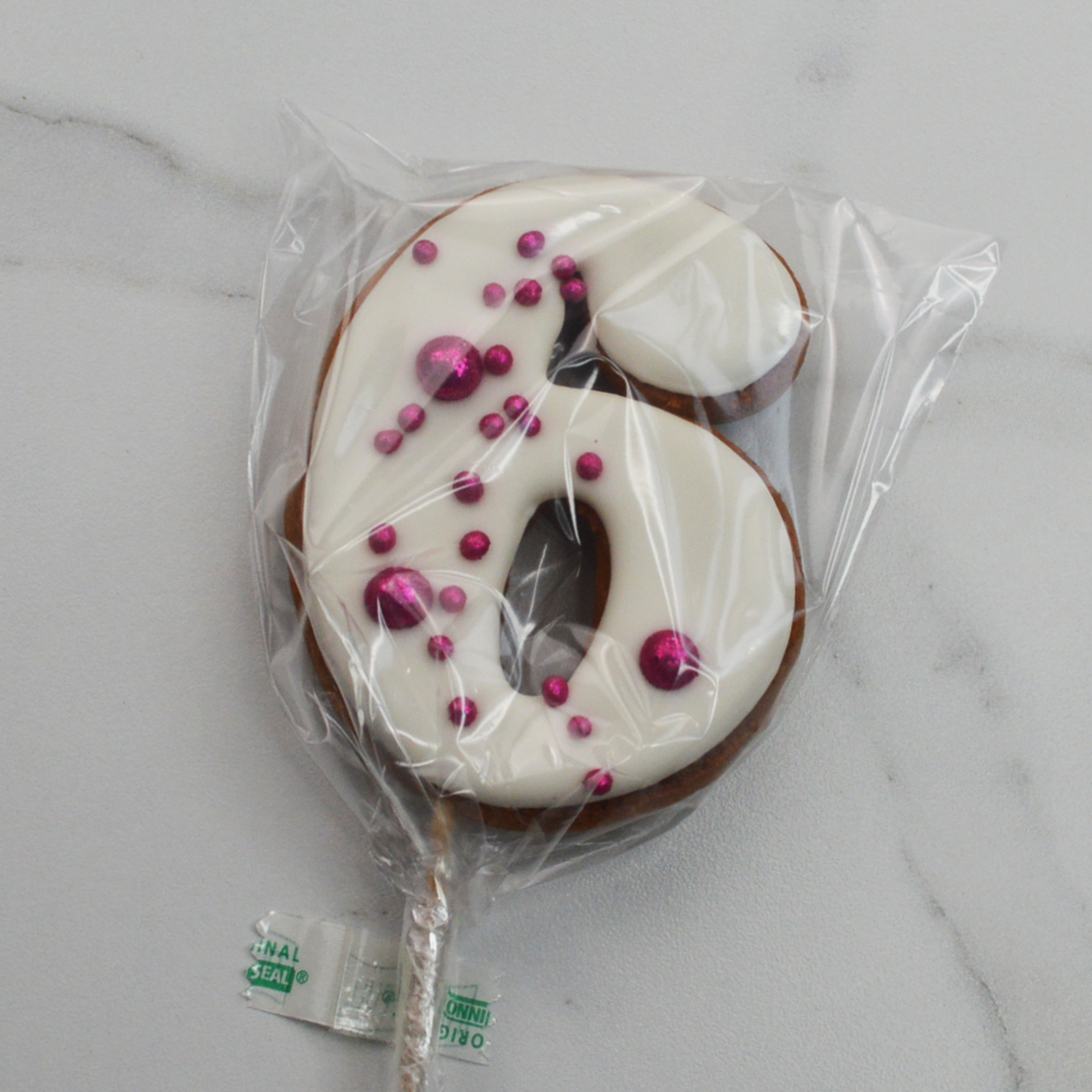 —Пряник ЦИФРА "6" с посыпкой РОЗОВЫЙ блеск 9см