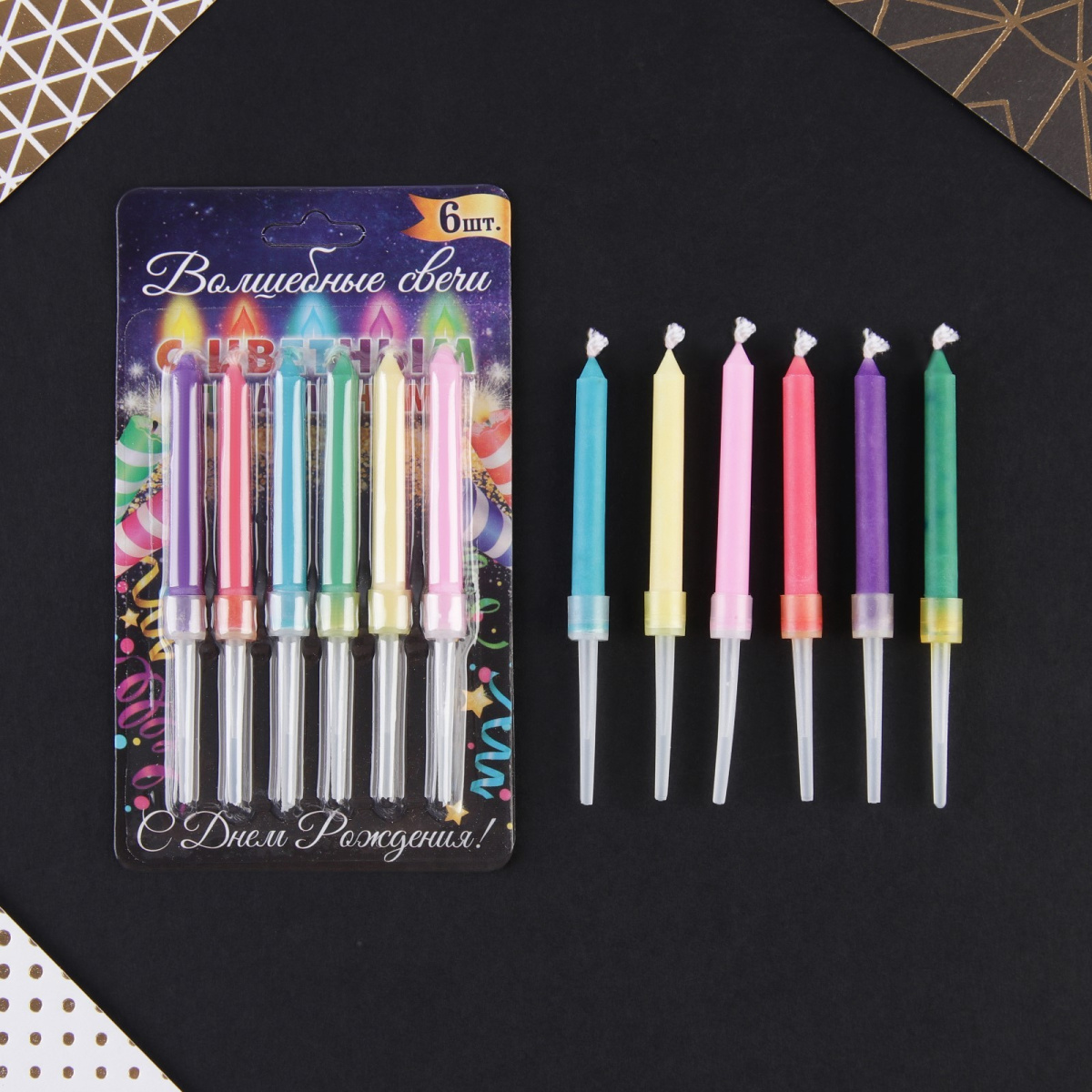 Размер свечи 8,6х0,6см (шпажка 4см)