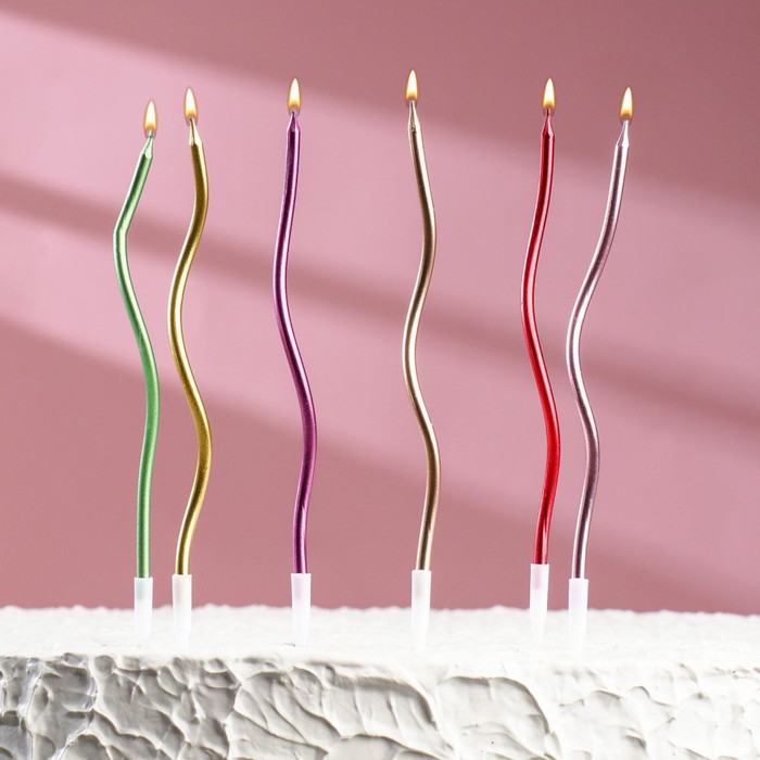 Свечи для торта коктейльные "Серпантин" цветные 6 штук