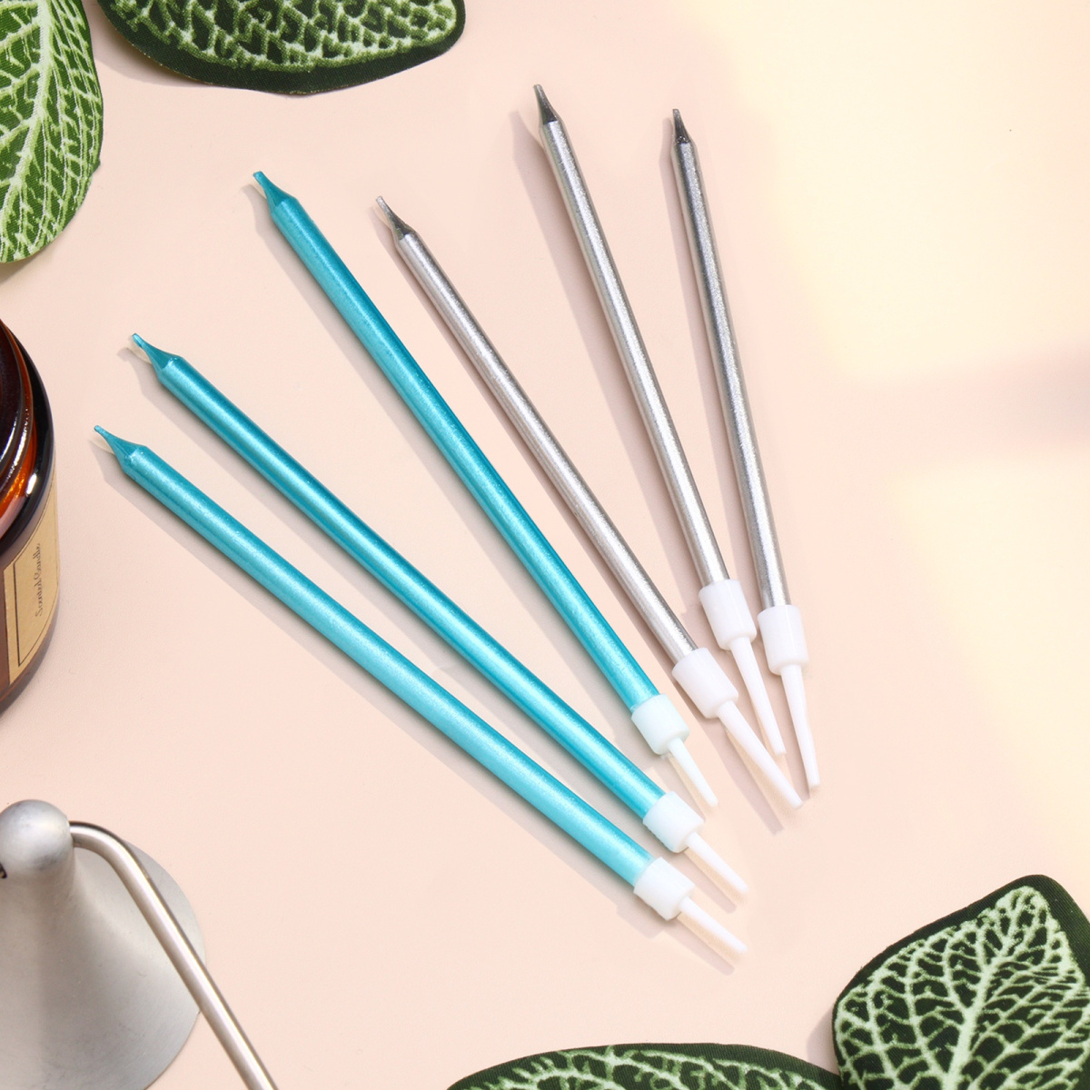 Свечи в торт "Ройс" голубые-серебро 13см 6 штук