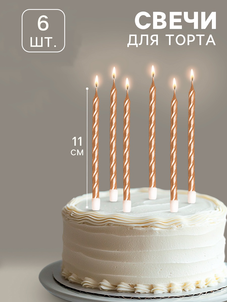 Свечи в торт Витые ШАМПАНЬ 11см 6 штук