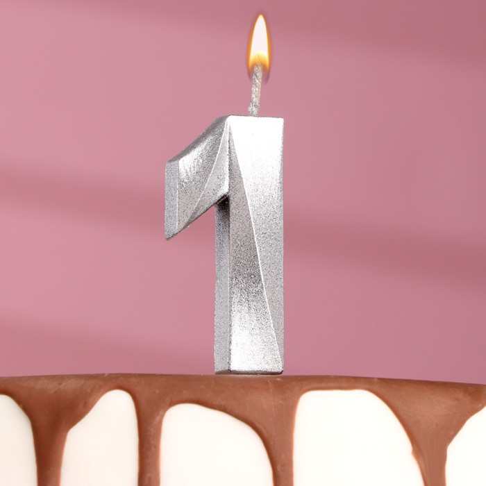 Свеча восковая "Грань" СЕРЕБРО цифра 1