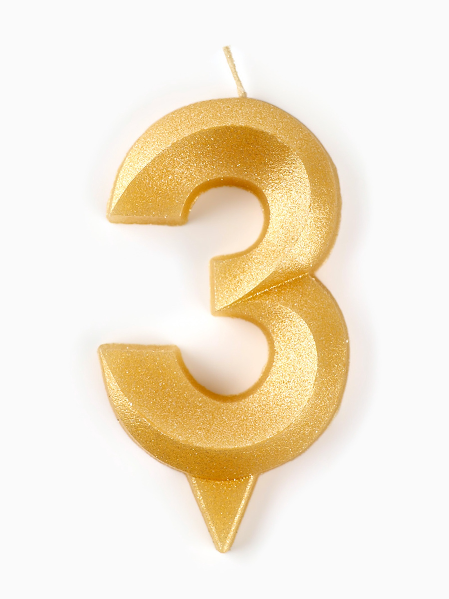 —Свеча восковая "Грань" ЗОЛОТО цифра 3