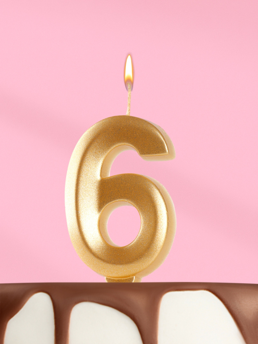 Свеча восковая "Грань" ЗОЛОТО цифра 6