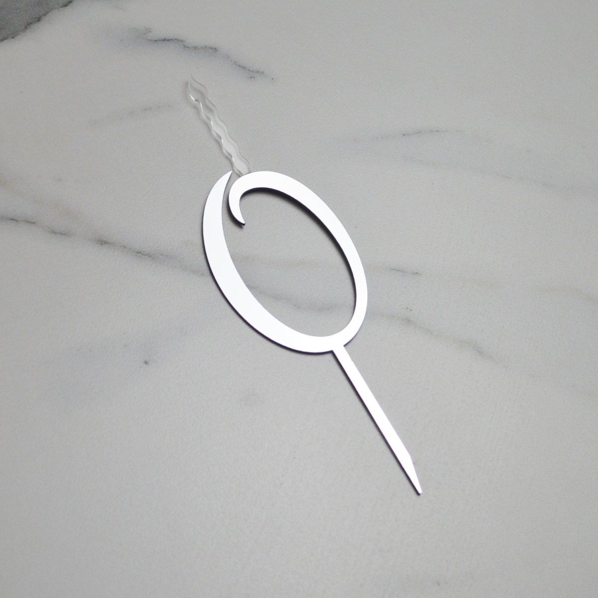 —Акриловый топпер-СВЕЧА цифра 0 СЕРЕБРО