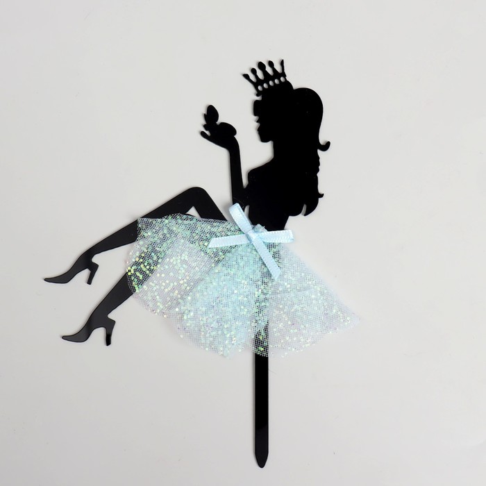 Пластиковый топпер для торта сидячая девушка в платье с короной - незаменимый элемент декора.