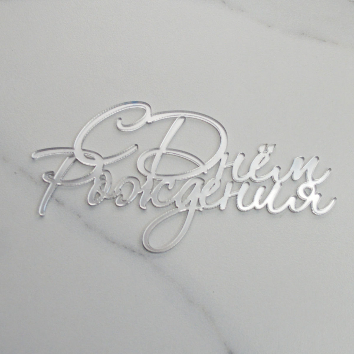 —Топпер акриловый зеркальный "С Днем Рождения" №15 СЕРЕБРО
