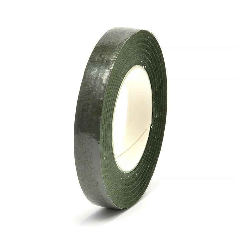 Темная зеленая клейкая лента имеет липкую внутреннюю сторону, которая при небольшом растягивании клеится к предыдущему слою.