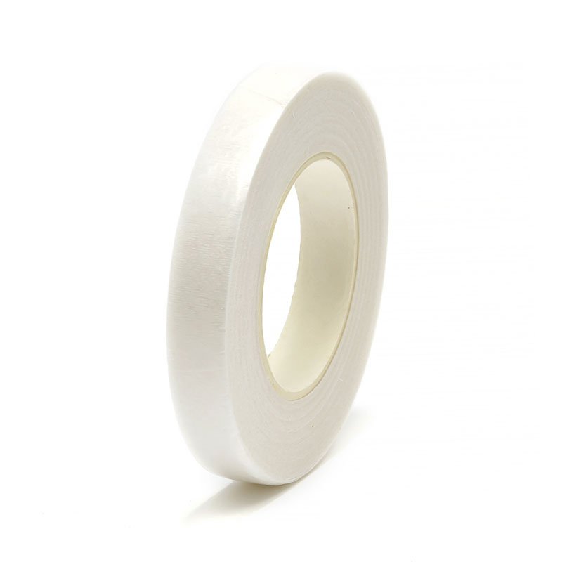 Белая клейкая лента имеет липкую внутреннюю сторону, которая при небольшом растягивании клеится к предыдущему слою.