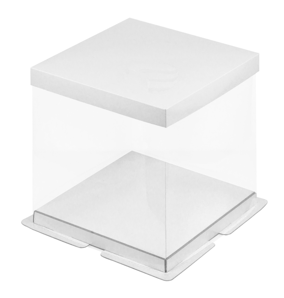Коробка ПРЕМИУМ с крышкой и дном белого цвета и прозрачными стенками.