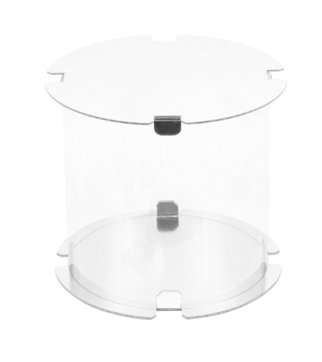Коробка-тубус с прозрачными стенками, дном и крышкой белого цвета.