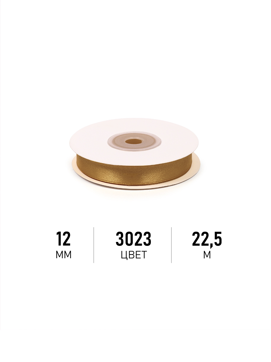 —Лента атласная 12мм темно-золотой (катушка 22,5м) 3023