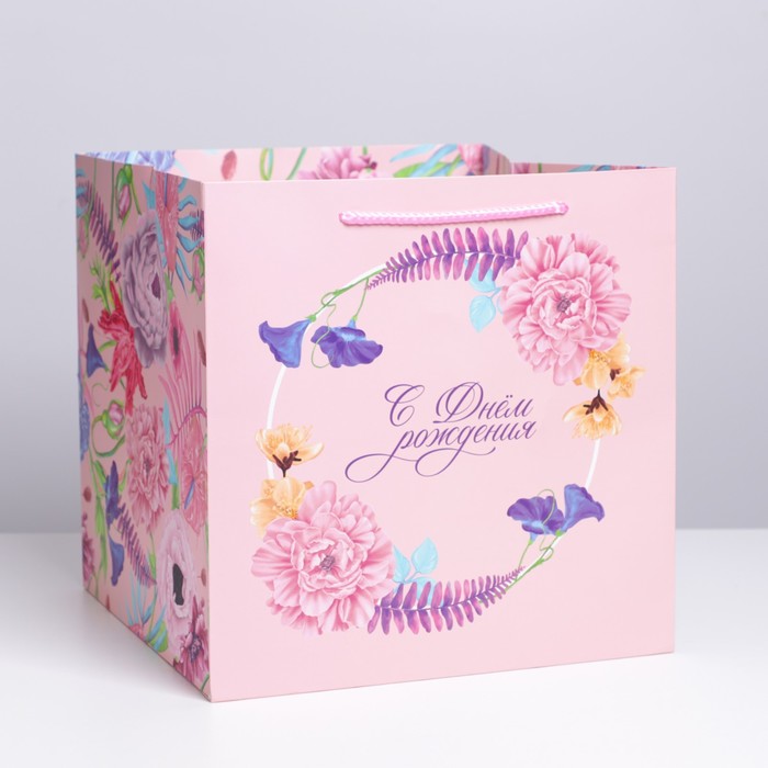 Максимально вмещает в себя коробку для торта размером 26х26см по низу.