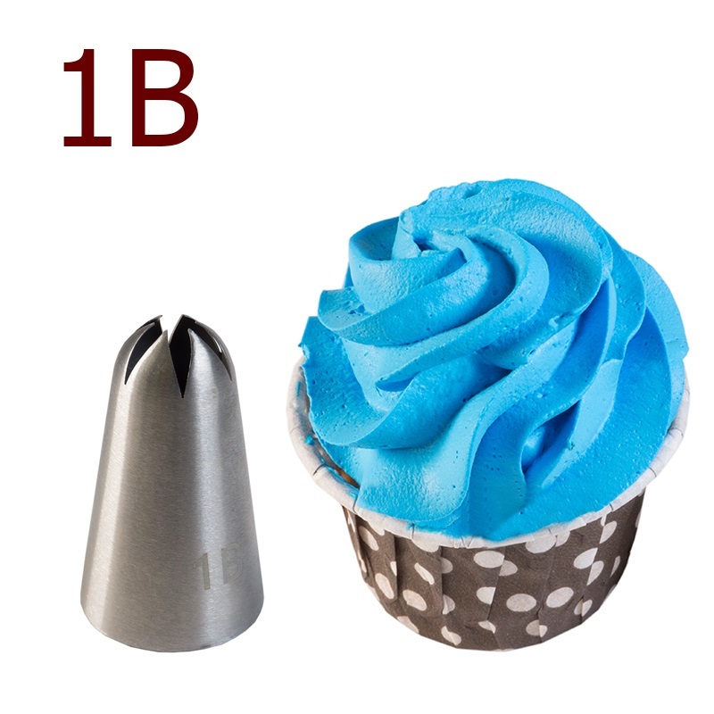 Насадка 1Б одна из самых популярных насадок у кондитеров, с помощью этой насадки легко сделать шапочки на капкейках. Насадка часто используется при декорировании тортов, так как позволяет создавать красивые волны, бордюры и узоры.