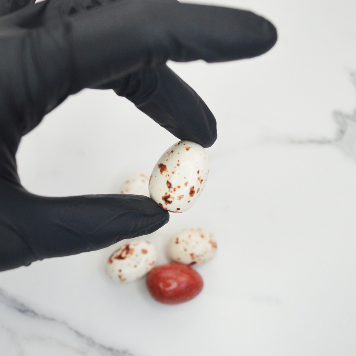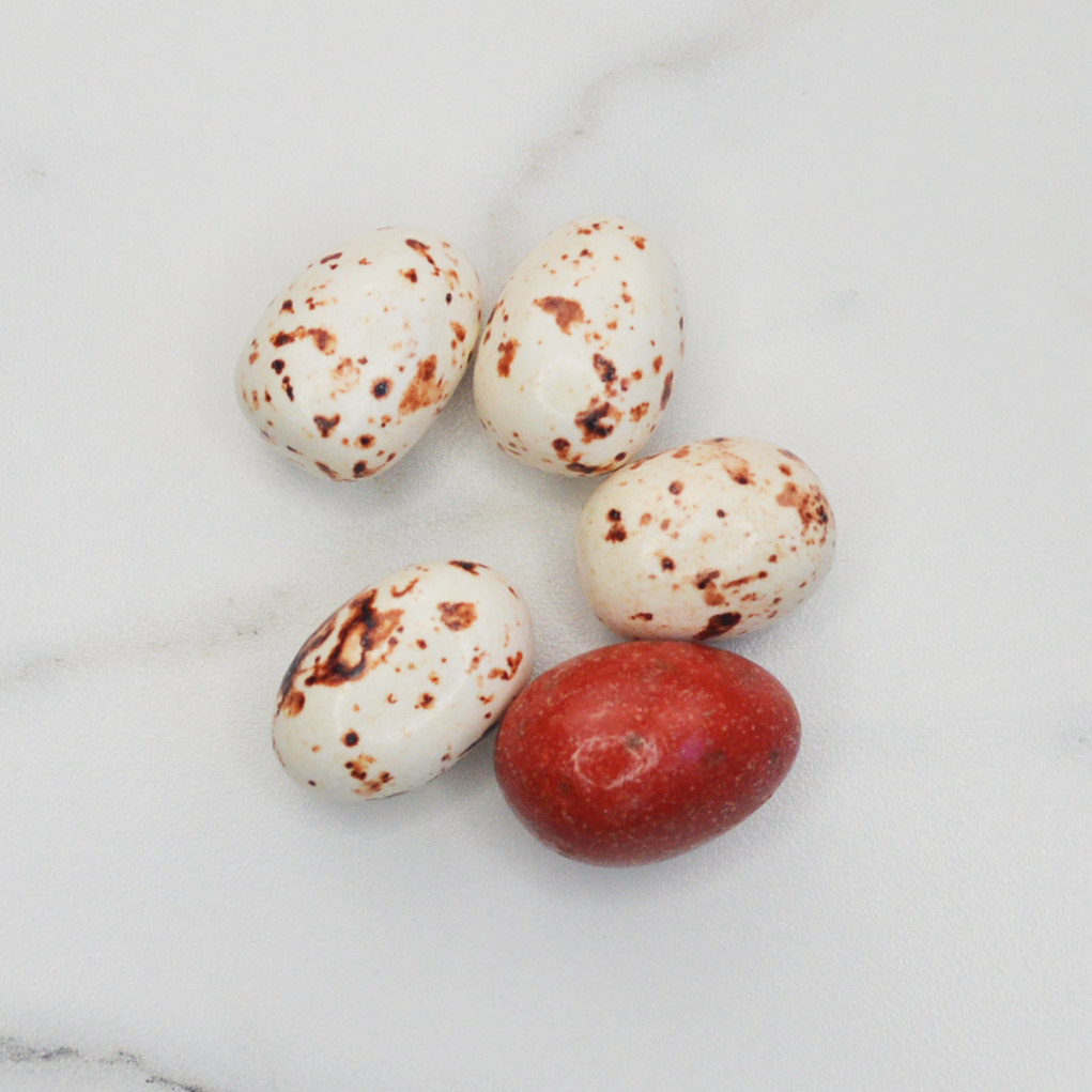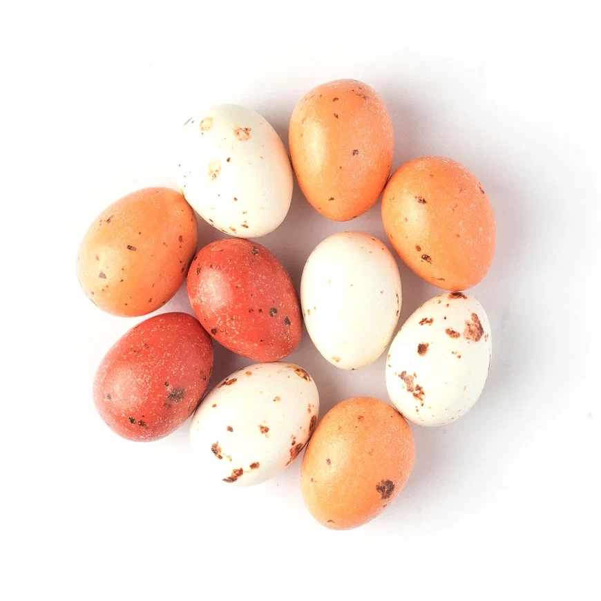 Состав: марципан (40%) (миндаль, сахар, вода, инвертный сахарный сироп), темный шоколад 38% (какао масса, сахар, какао-масло, какао-порошок, эмульгатор (лецитин подсолнечника), ароматизатор (ваниль)), сахар 20%, красители (диоксид титана, рибофлавин, маслосмолы паприки (экстракт паприки), антоцианы, синий блестящий FCF), загуститель (гуммиарабик), полировка (шеллак). Продукт может содержать следы ореха фисташки, фундука, миндаля, глютена, кунжута, молока и продуктов его переработки (в т.ч. лактоза). Может вызвать аллергическую реакцию.