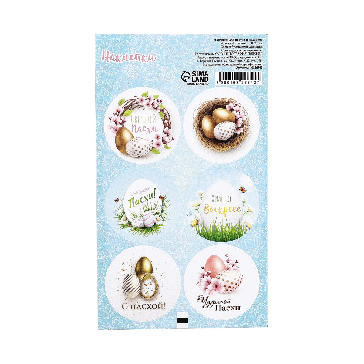 —Наклейки Светлой Пасхи ГОЛУБЫЕ 9,5х16см