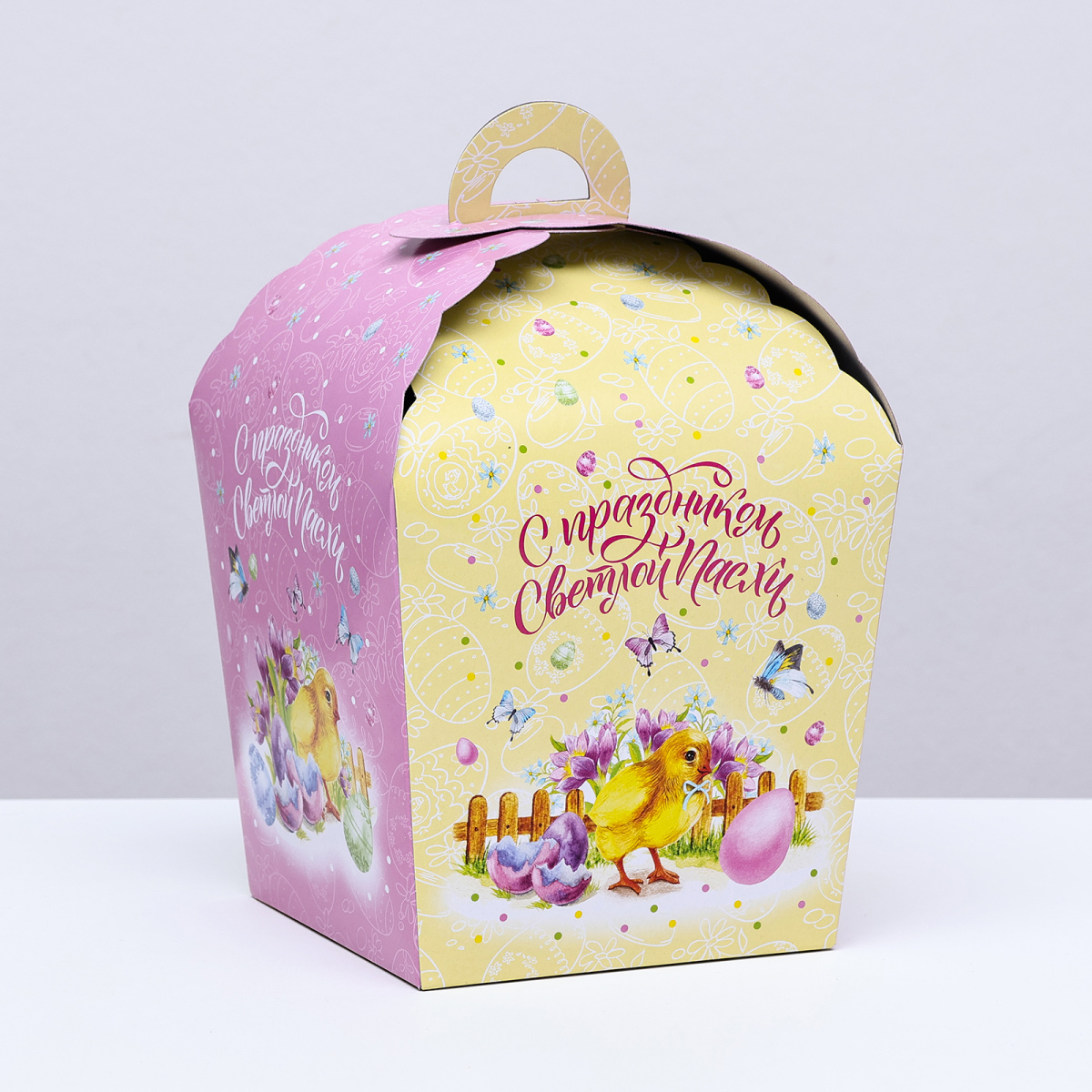 —Коробка для кулича складная ЦЫПЛЕНОК розовая-желтая 14х14х26см