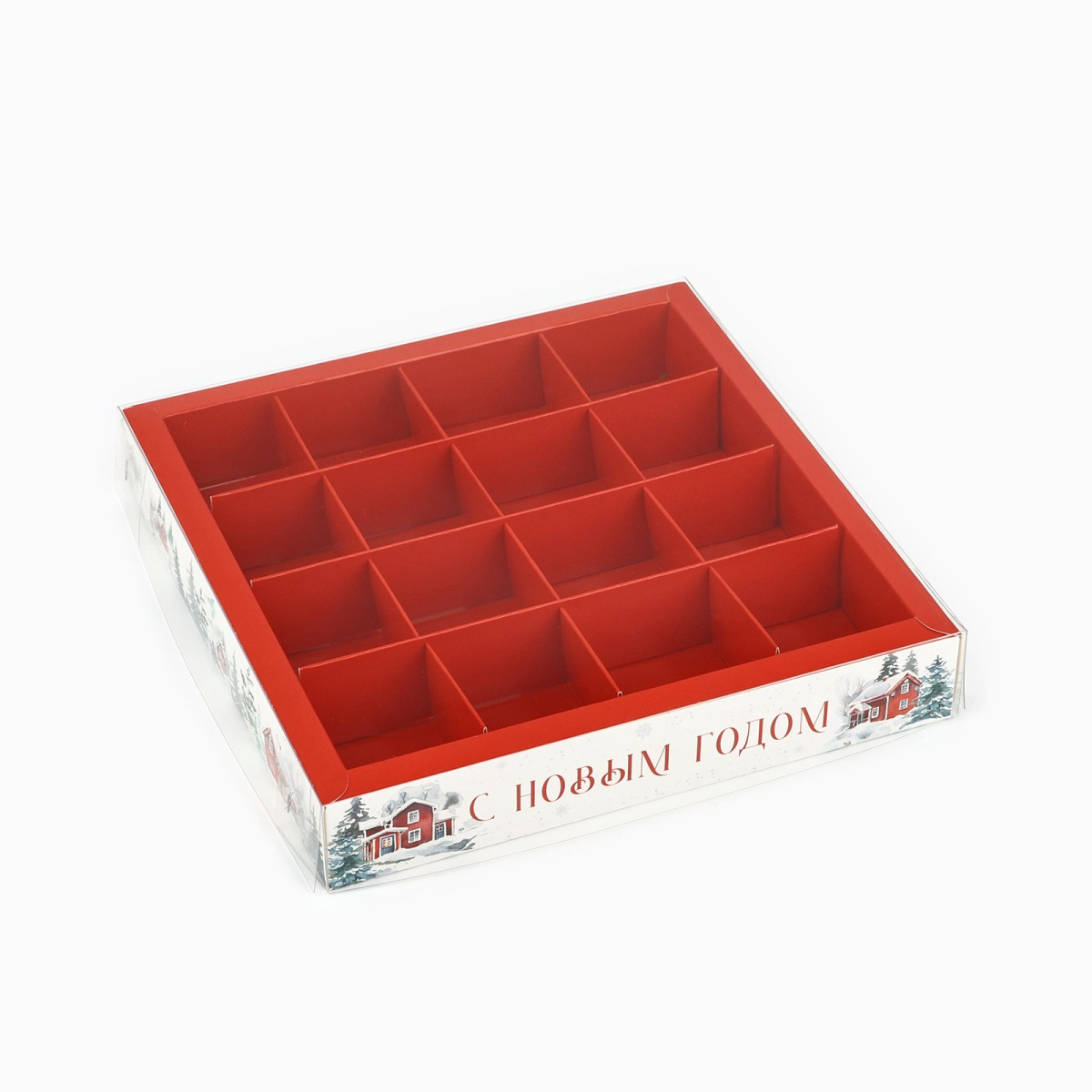 —Коробка на 16 конфет СНЕЖНЫЕ ДОМИКИ 19х19х3см