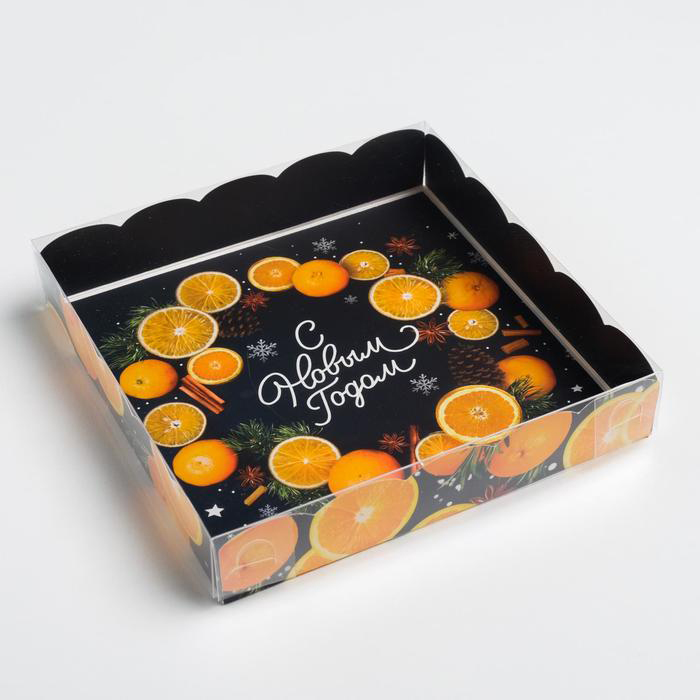 Коробка для пряников "С Новым Годом" с апельсинами 15х15х3см