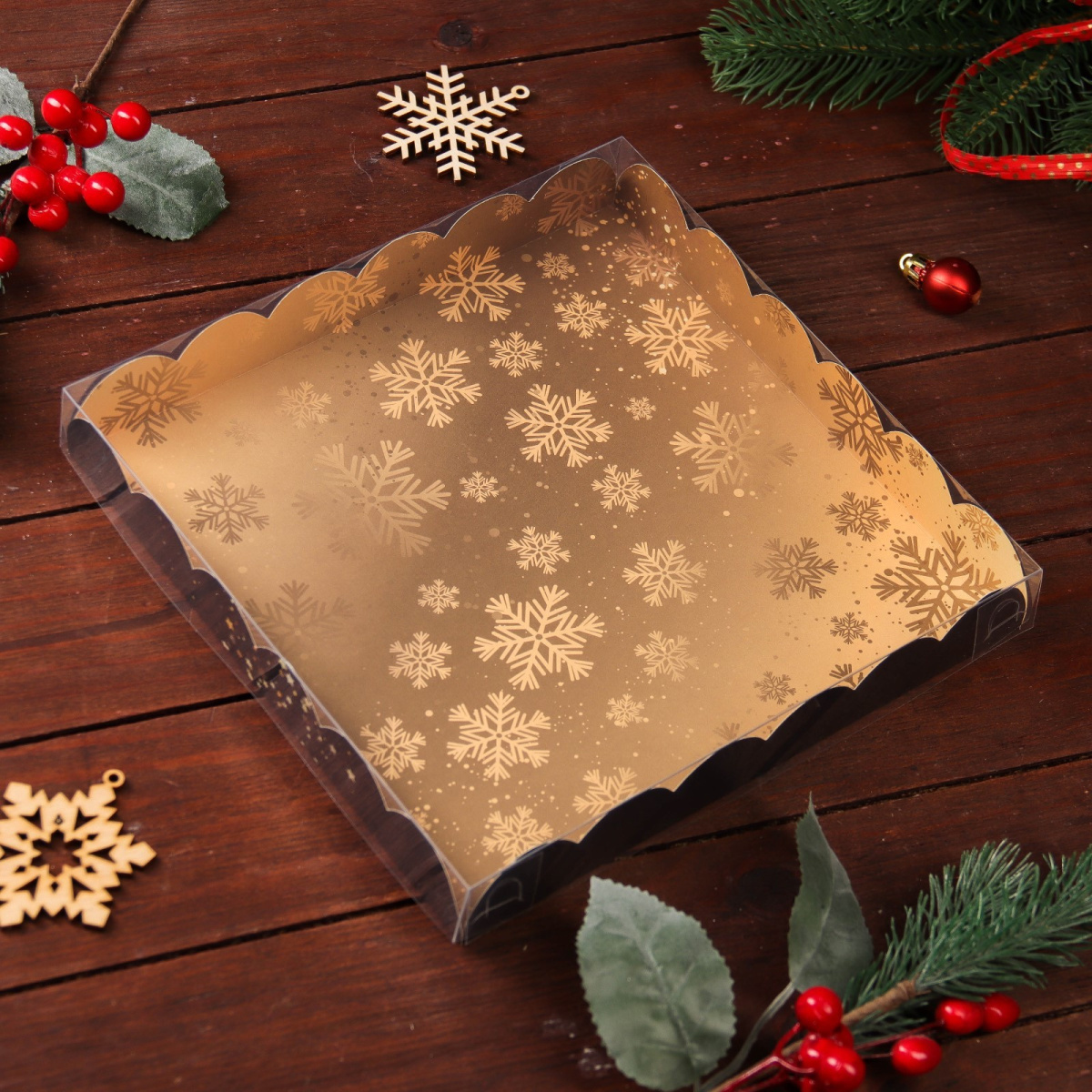 Коробка для пряников "С Новым Годом" золото-черная 21х21х3см