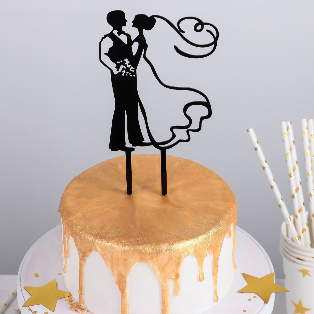 Пластиковый топпер для торта на свадьбу незаменимый элемент декора.