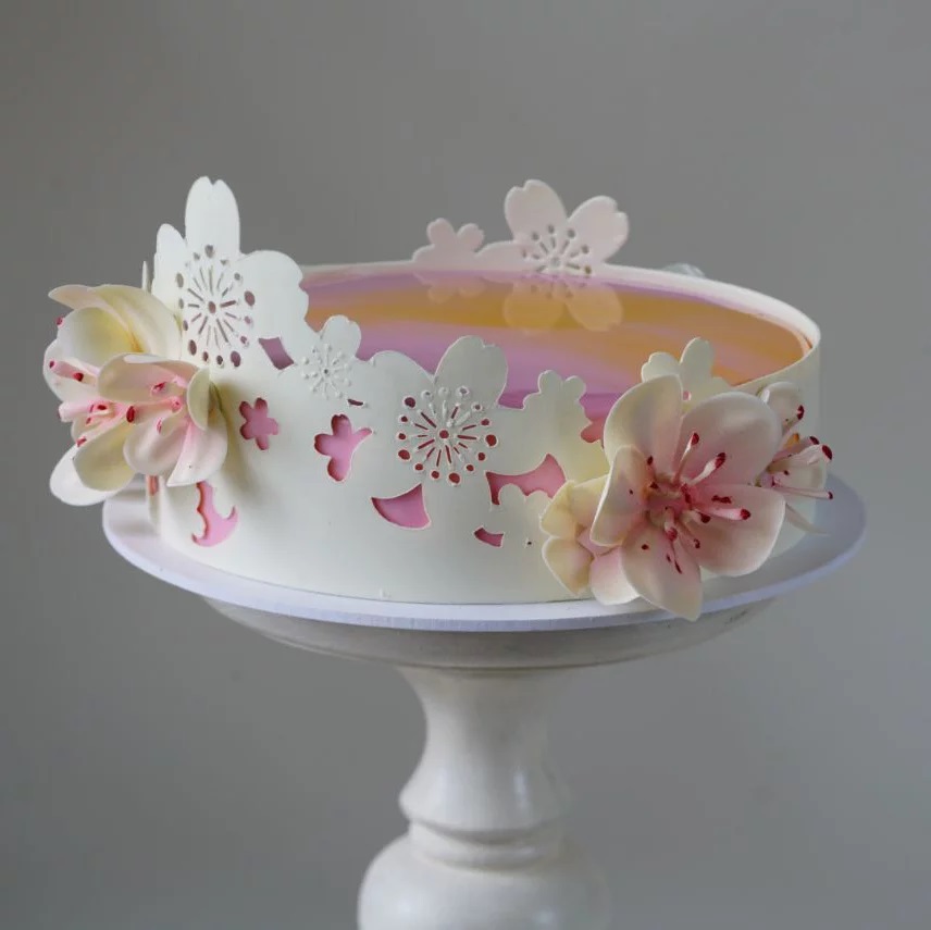 Темперированный шоколад или растопленную шоколадную глазурь распределить на трафарет и установить на торт, после застывания аккуратно снять трафарет с декора.
