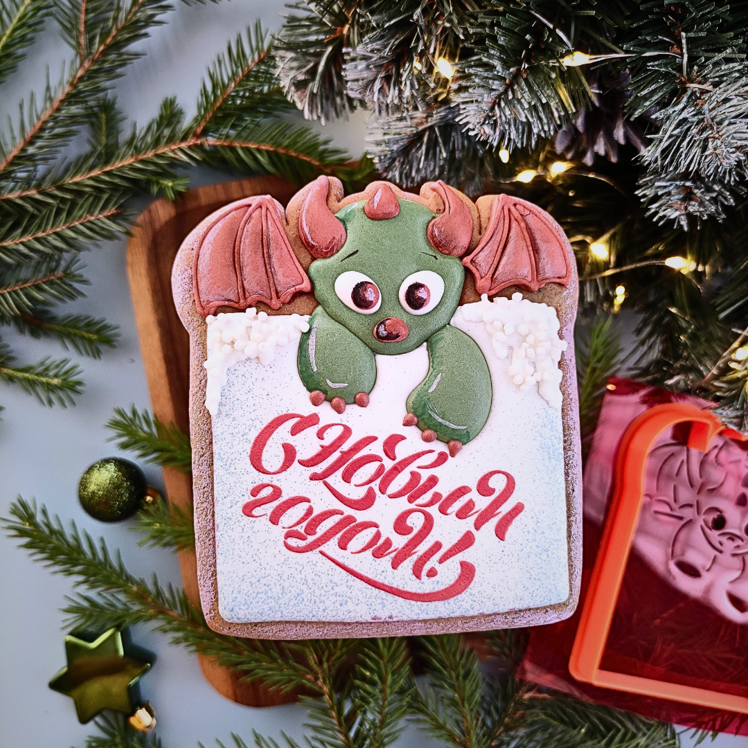 Вырубка с трафаретом в виде дракона с открыткой, предназначена для вырезания и вырубки пряника, безопасный и прочный материал, легко и просто сделать нужные фигурки, лишних усилий для надавливания прилагать не нужно.