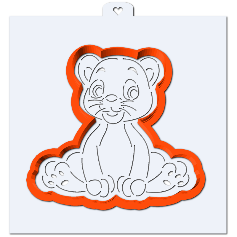 Вырубка с трафаретом в виде тигренка, предназначена для вырезания и вырубки пряника, безопасный и прочный материал, легко и просто сделать нужные фигурки, лишних усилий для надавливания прилагать не нужно.